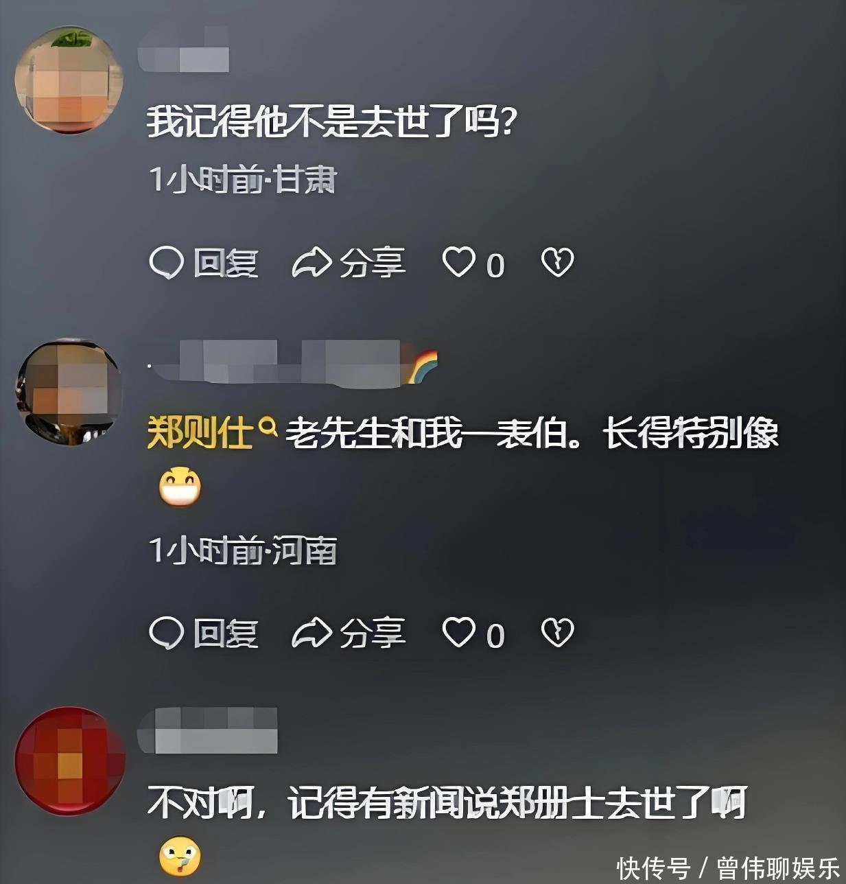 部分用户声称“记忆里他早已离世”,引发广泛误传。这已不是郑则仕第一次遭遇“被死亡”。早在2013年,他就曾手持当天报纸拍照发微博证明自己安好。
